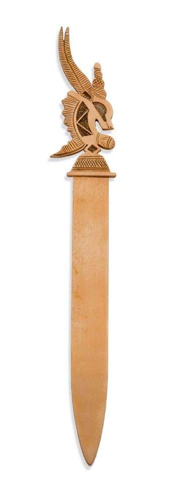 DEUX COUPE-PAPIERS en or. Les manches ciselés à l'effigies de cimiers d'an
