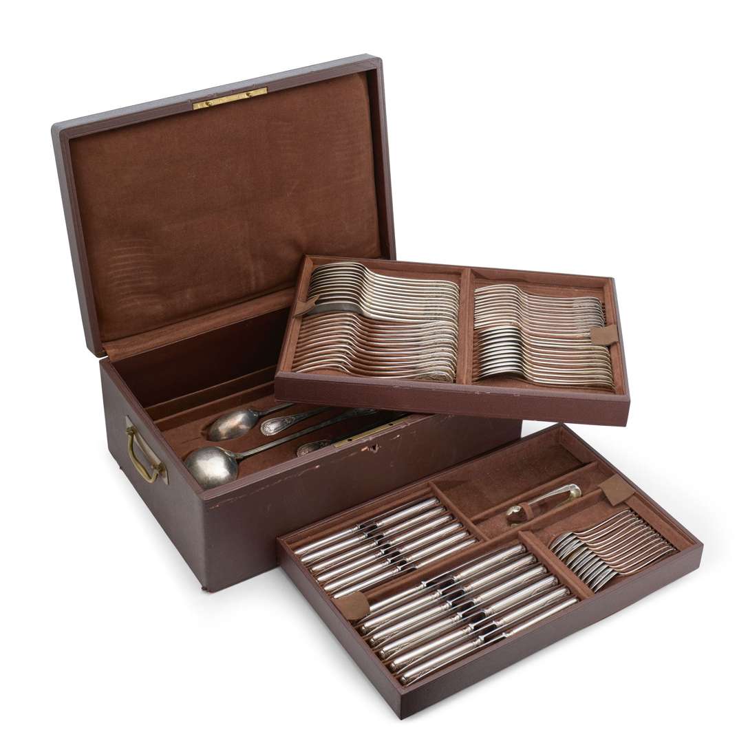 MÉNAGÈRE HENIN & CIE en argent, style Louis XIV au décor de rinceaux et pa