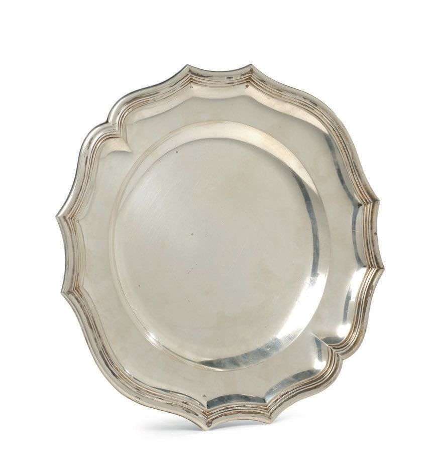 Plat circulaire an argent, les bords chantournés et moulurés de filets.