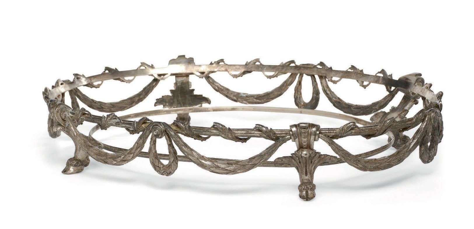 IMPORTANT SURTOUT DE TABLE à monture en argent à décor de guirlandes festonnées. Les quatre pieds se terminant en sabot. Poinçon Minerve.