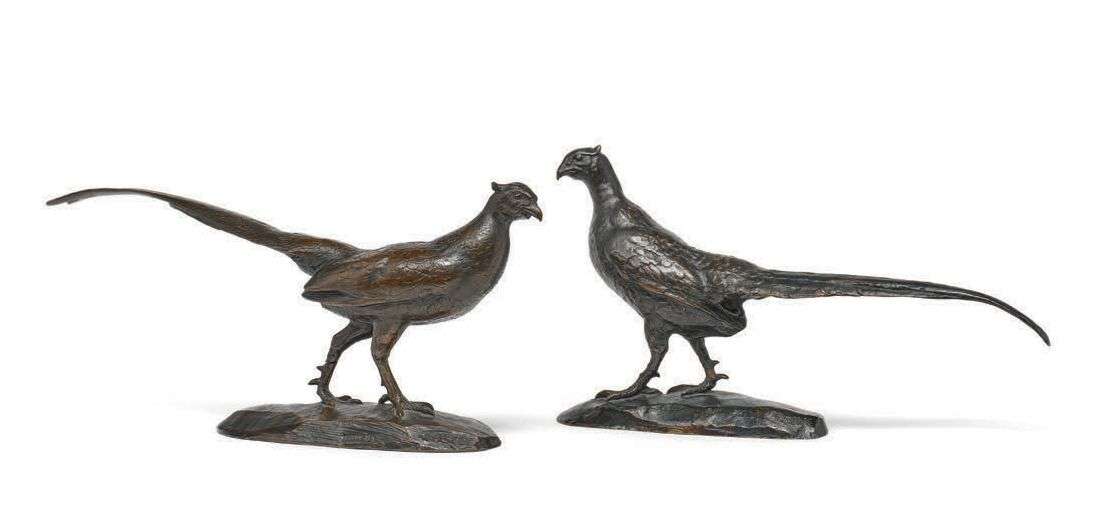 Ces deux faisans de Barye, de même provenance, sont des exemplaires très rares fondus du vivant de l'artiste comme l'atteste le port de l'estampille et les numéros d'épreuves associés.