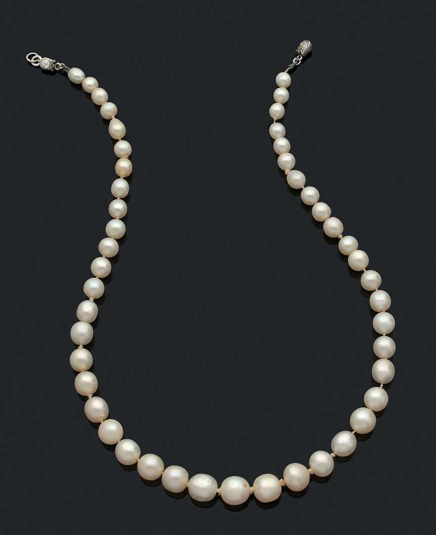 Selon la tradition familiale ce rang de perles a été offert par Hubert de Cambacérès à son épouse parmi un ensemble de 8 rangs de perles naturelles.