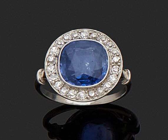A sapphire, diamond and platinum ring, report