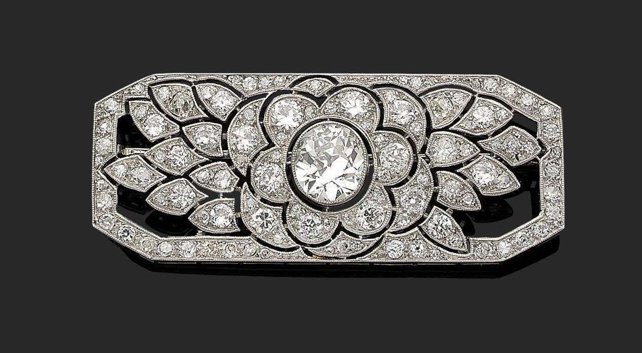A diamond, platinum and gold brooch