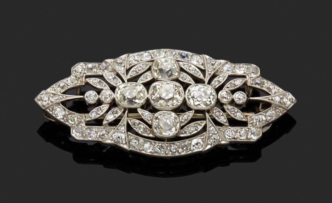A diamond, platinum and gold brooch