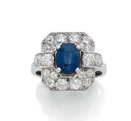 Saphir ovale, diamants taille ancienne