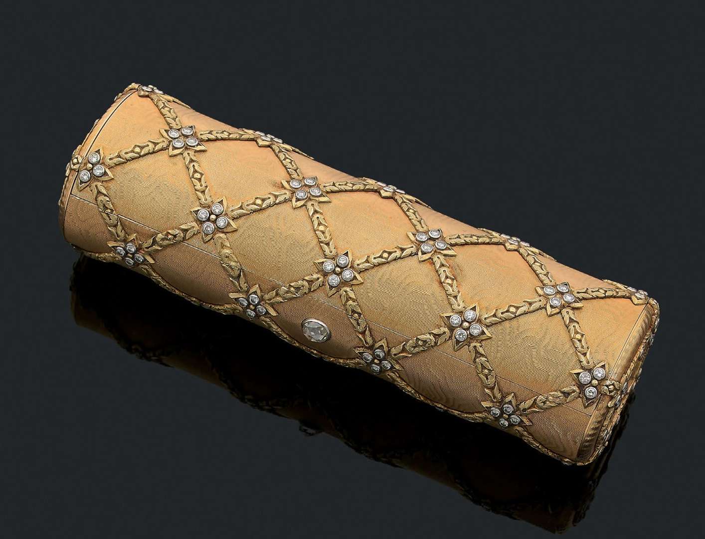 Or 18k (750), diamants ronds et taille rose pour le poussoir