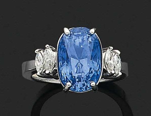 Saphir ovale, diamants navettes