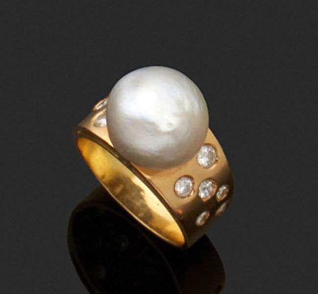 A natural pearl, diamond and gold ring, report