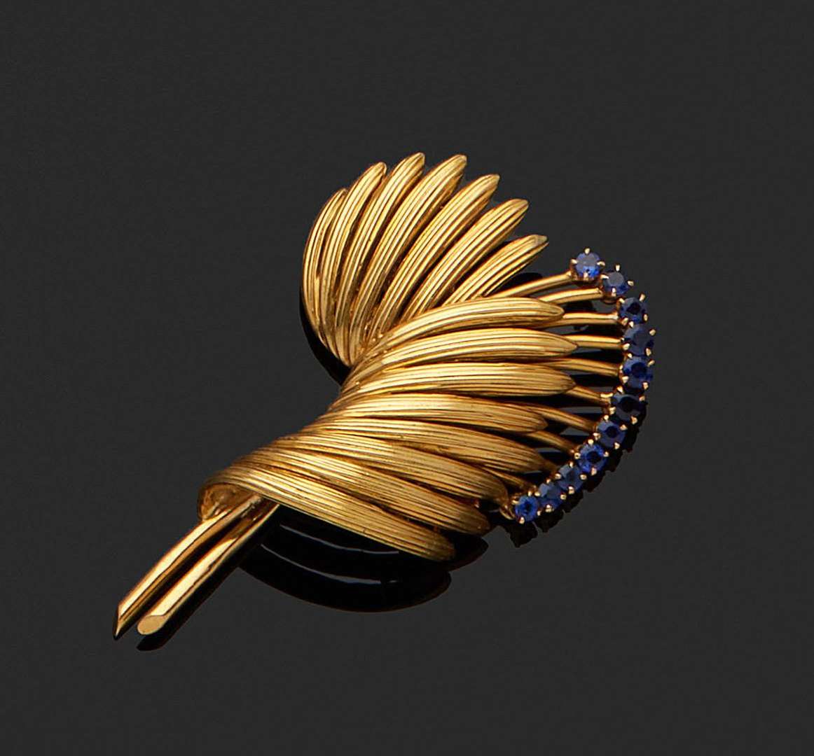 A sapphire and gold clip, signed Van Cleef & Arpels