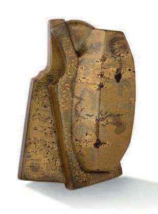 Petit netsuke en laque hiramaki-e et kirigane représentant des raquettes Hagoita et un Buri-buri décoré de motifs végétaux.