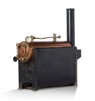 Chaudière à vapeur à bouilleurs en cuivre, laiton et tôle, manomètre Stuar