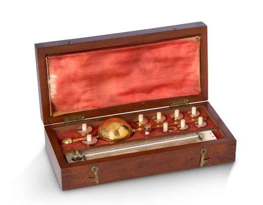 Aéromètre de SIKES en laiton, complet de ses accessoires, dans sa boîte en acajou.
