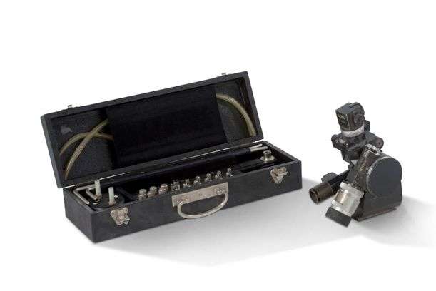 Indicateur de vitesse d'air type HAENNI comprenant un micro-manomètre différentiel et ses accessoires dans sa boîte d'origine avec documentation.