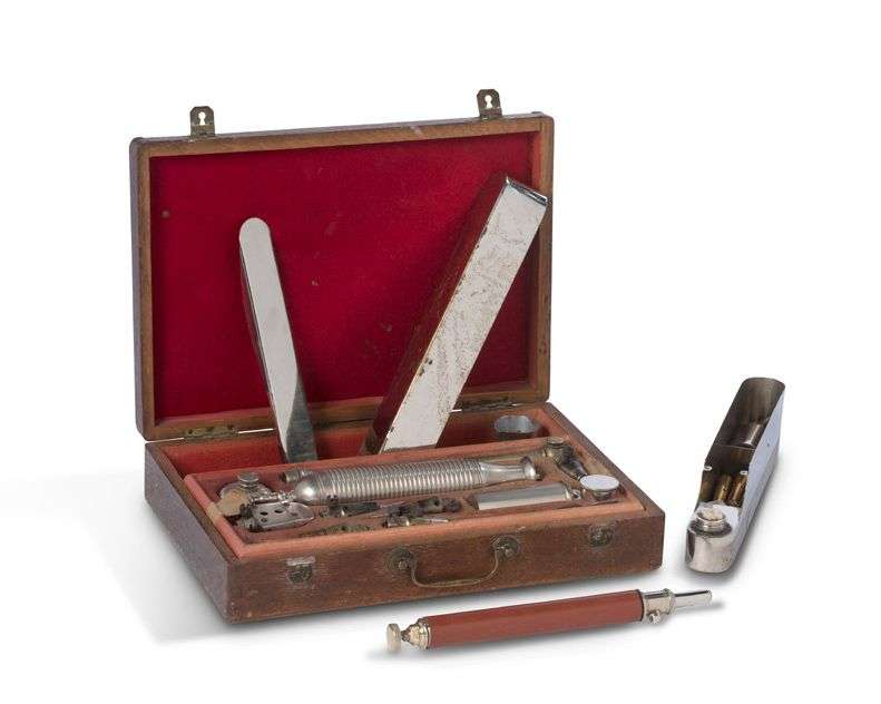 Un nécessaire d'instruments de chirurgien comprenant notamment un aphyso-c