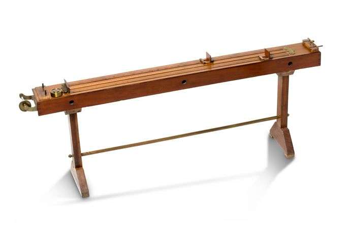 Rare sonomètre différentielde Marloye en bois et métal pour la détermination de la fréquence d'un son donné, la caisse portant l'estampille du fabricant.