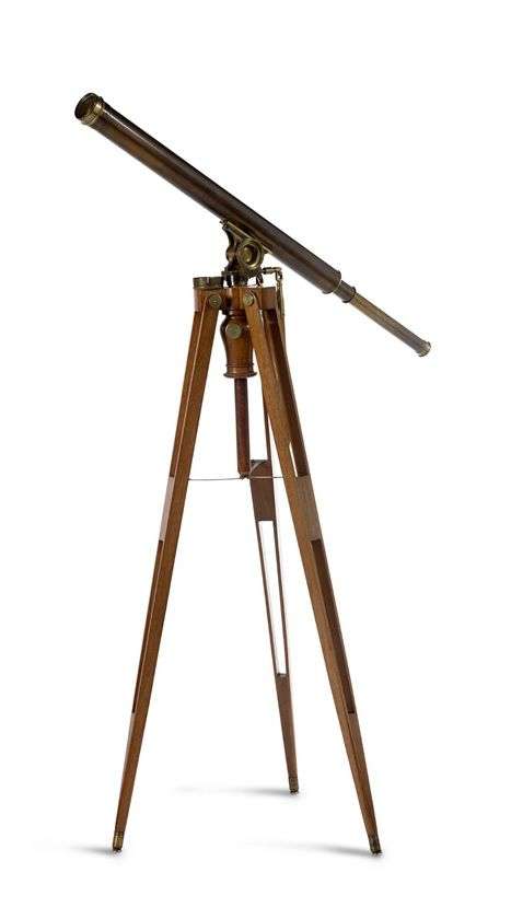 Lunette astronomique en laiton et métal, sur un piètement tripode en bois