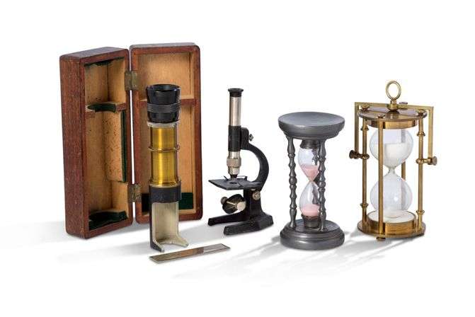 - Un sablier en laiton dit « horloge à retournement » à anneau de suspension et sable blanc, durée de 30 min