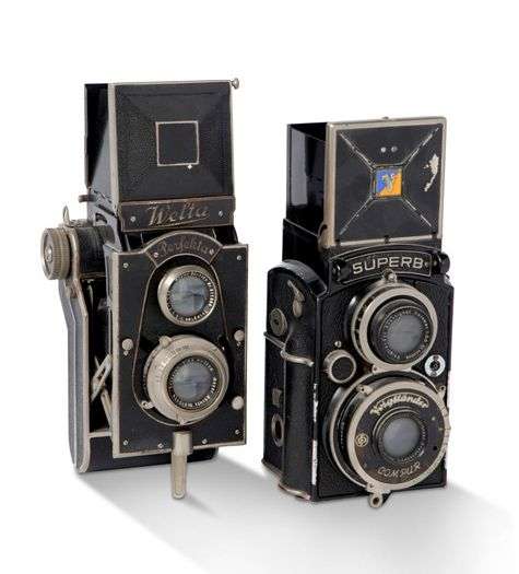 Boitier Welta Perfekta avec objectif Meyer Görlitz Trioplan 3.5/7.5 cm et boîtier Voigtländer SuperB avec objectif Heliar 3.5/7.5 cm (usures).