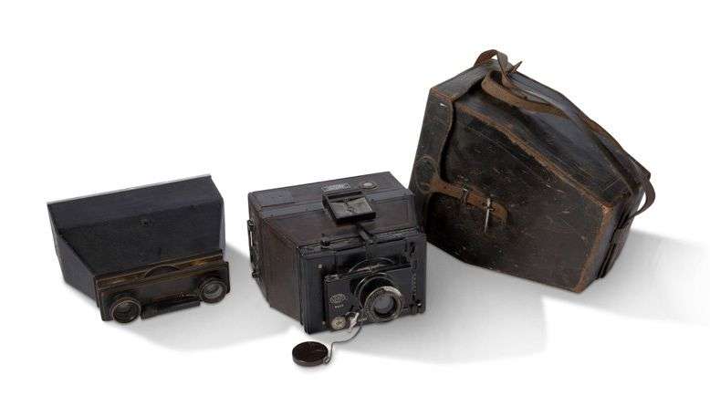 Appareil Photo-Jumelle (JC) avec objectifs E. Krauss et appareil photographique à plaque Gaumont (Decaux) Spido avec objectif E. Krauss.
