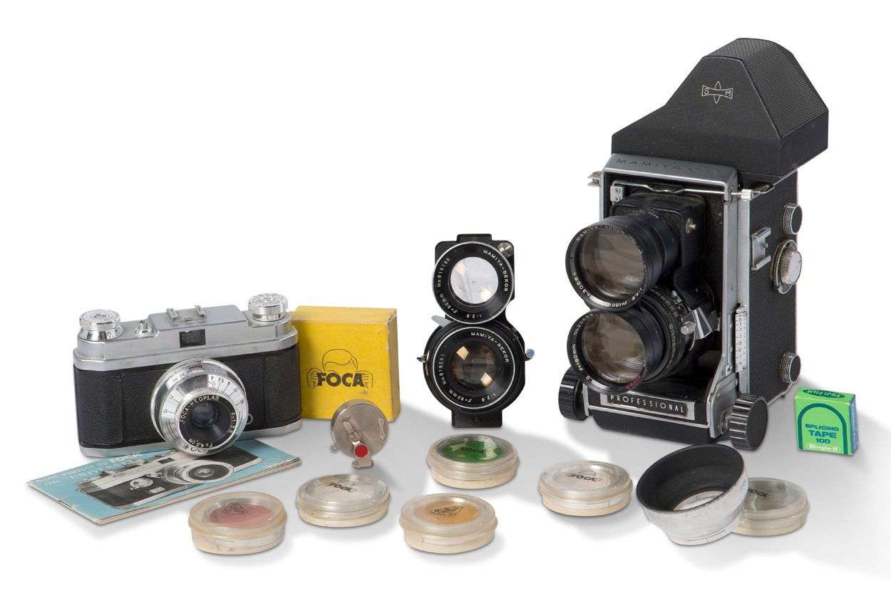 Boitier Mamiya C33 Professional avec objectif Mamiya-Sekor 4.5/180 mm et un objectif supplémentaire Mamiya-Sekor 2.8/80 mm.