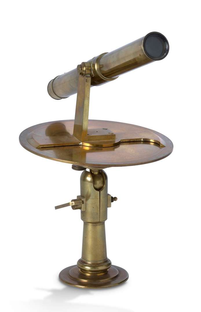 Cercle d'arpentage en laiton à lunette fixée sur une alidade mobile signée « Rochette Jeune / Au Griffon / quai de l'horloge à Paris », le limbe gradué de 0 à 350°.