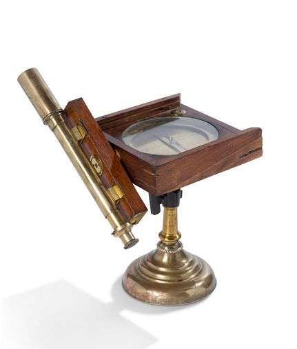 Boussole de relèvement dite « forestière » en acajou et laiton, avec nivea