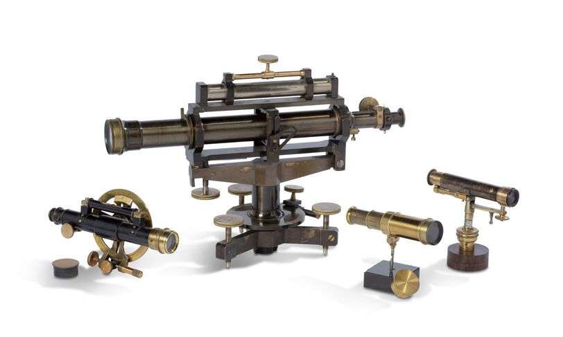 On y joint : trois petites lunettes dont deux à niveaux en laiton