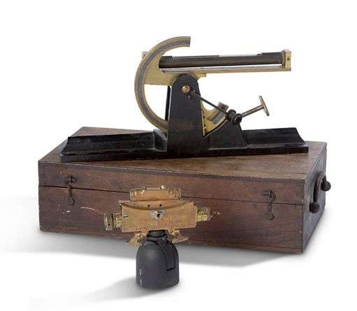 On y joint : un clinomètre en cuivre signé « Palmer 1942 »