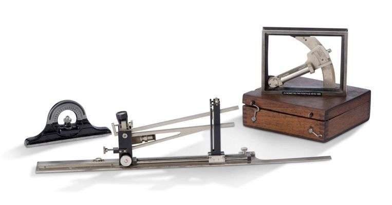 - Un clinomètre à bulle en acier et métal laqué noir, signé « Chasselon constructeur Paris », seconde moitié du XIXe siècle