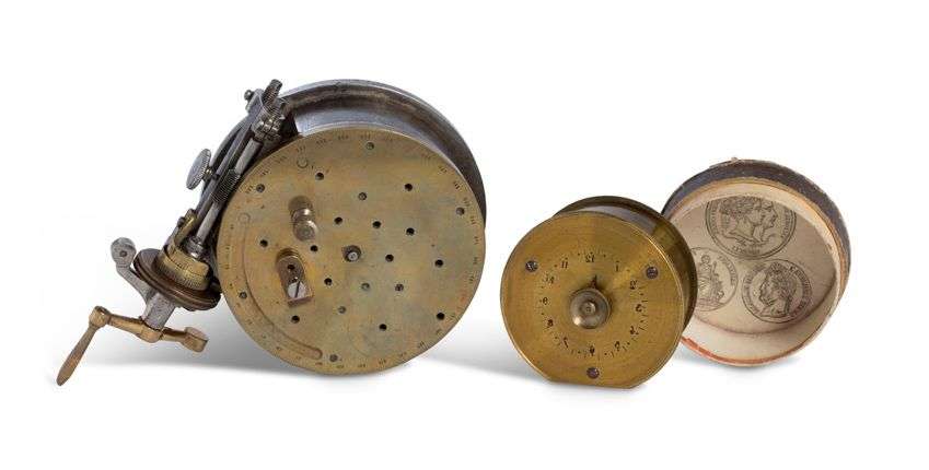 On y joint : un instrument circulaire à manivelle latérale en laiton et acier, gradué de 0 à 350°