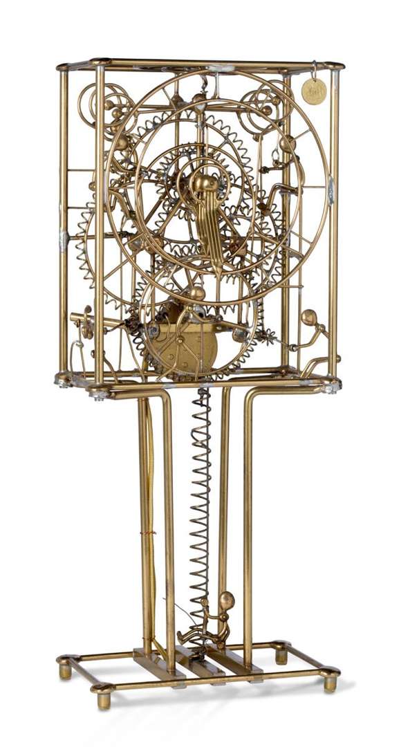 Pendule cinétique en laiton à sept personnages animés, signée Bowman Elec Chicago