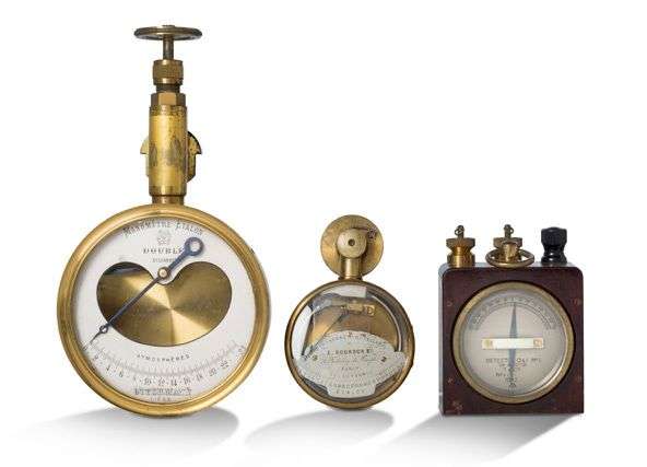 Réunion de deux manomètres en laiton et verre, l'un par la Maison BOURDON à Paris, l'autre par OTTERMAN à Liège.
