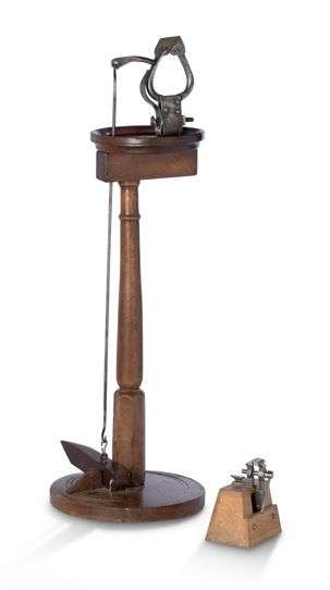 On y joint : un petit étau d'horloger, en bois et fer forgé