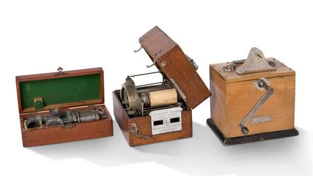 - Une machine à fabriquer de la neige carbonique, dans une boîte en acajou verni