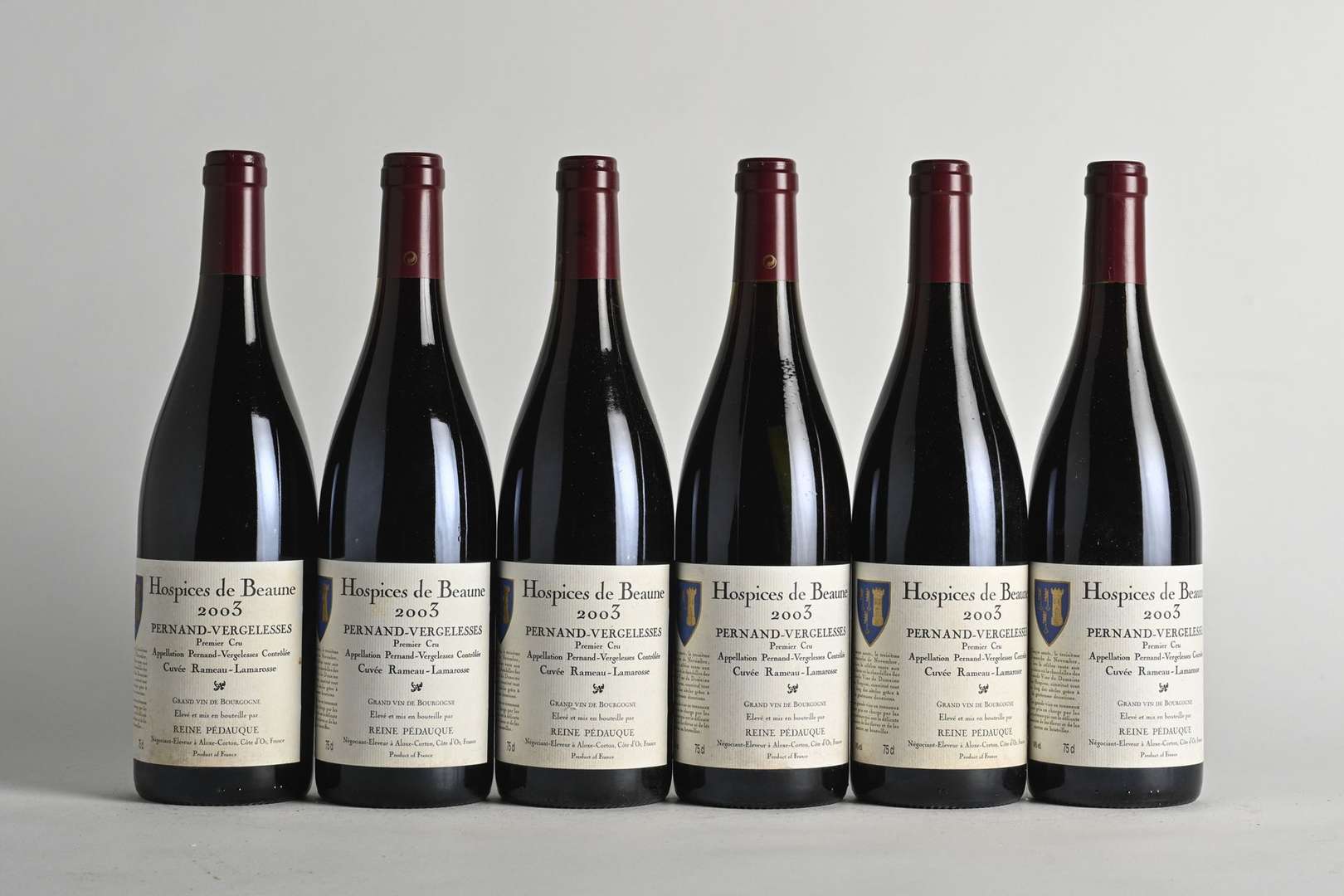 6 B PERNAND-VERGELESSES HOSPICES DE BEAUNE CUVÉE RAMEAU LAMAROSSE (Caisse Bois d'origine sale) (e.l.s.) - 2003 - Reine Pédauque
