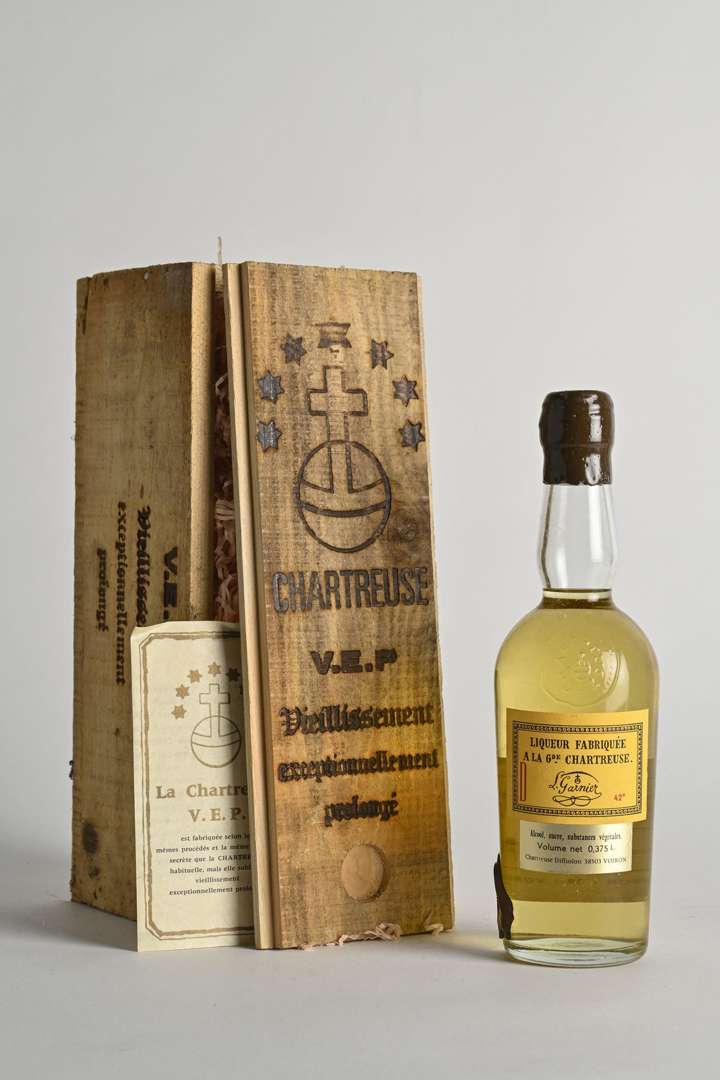 1 1/2 B CHARTREUSE JAUNE VOIRON V.E.P. 37,5 cl 42% (Caisse Bois d'origine)