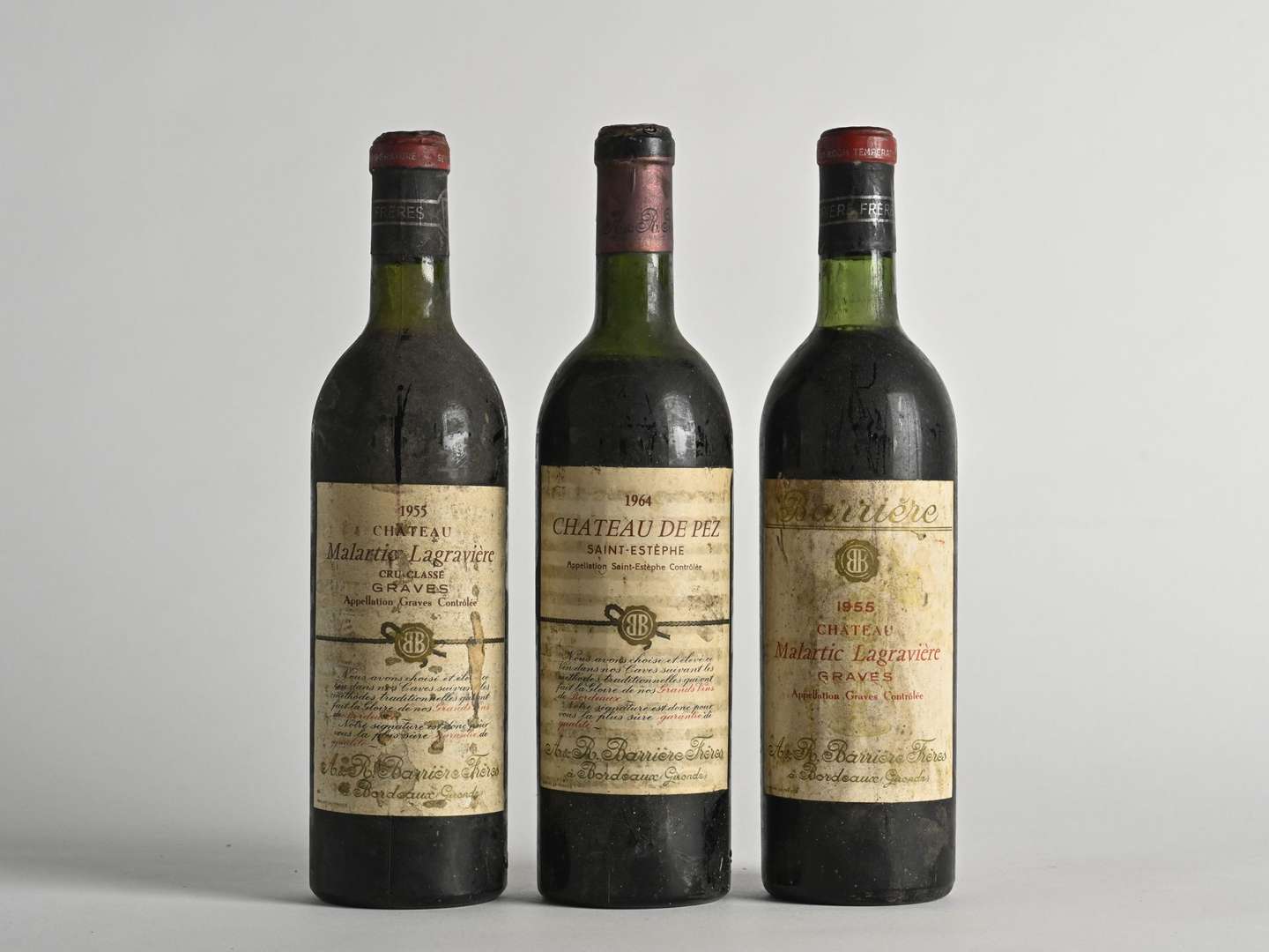 2 B CHÂTEAU MALARTIC-LAGRAVIÈRE Rouge mise négoce Barrière (T.L.B.+| e.t.h| c.s.) - 1955 - CC Graves
