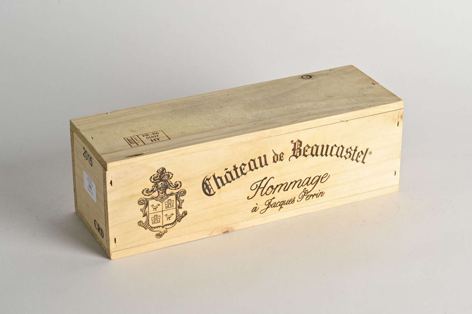 1 B CHÂTEAUNEUF DU PAPE HOMMAGE Â JACQUES PERRIN (Caisse Bois d'origine) - 2015 - Château de Beaucastel