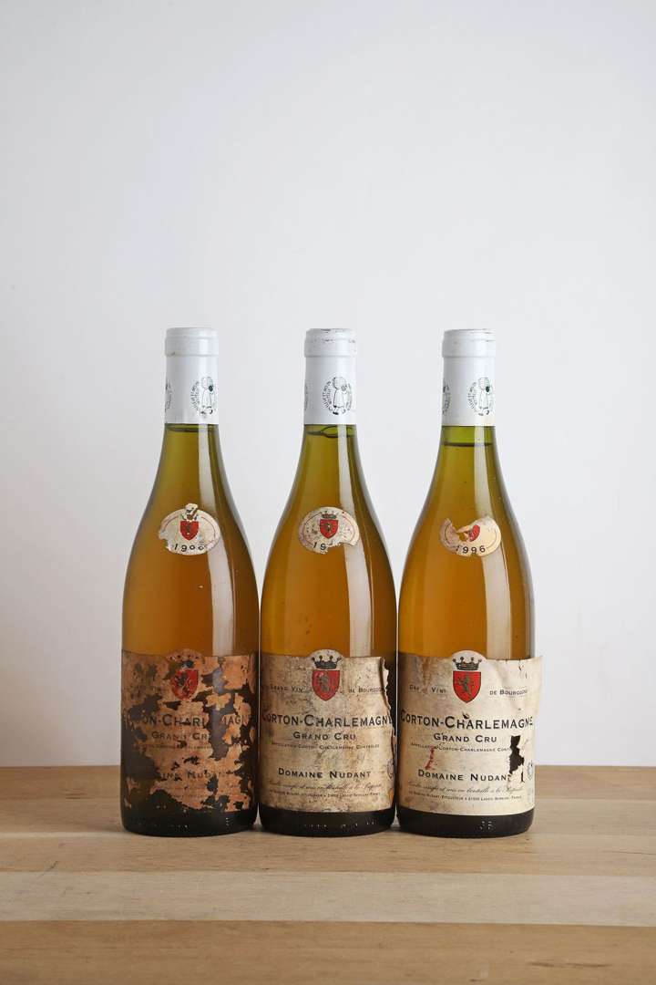 3 B CORTON-CHARLEMAGNE (Grand Cru) (e.t.a. à e.q.i| clm.a. partiellement lisibles) - 1996 - Domaine Nudant