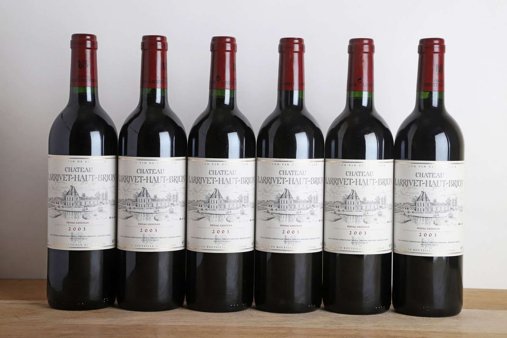 6 B CHÂTEAU LARRIVET HAUT-BRION Rouge (Caisse Bois d'origine avec pavillon supérieur abimé) - 2003 - Pessac-Léognan