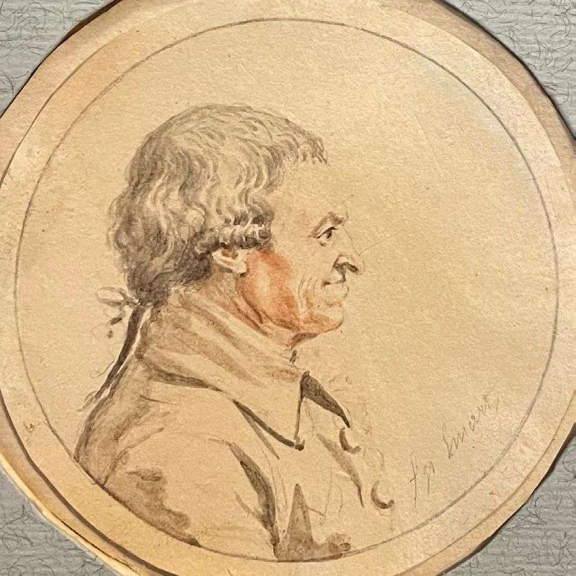 Réalisé sur papier, les couleurs à l'aquarelle étant finement évoquées, il s'agit très probablement du dessin préparatoire à la miniature finale comme l'artiste avait l'habitude de travailler. John Smart fut un des plus remarquables miniaturistes anglais de son époque avec Richard Cosway et Richard Crosse. Finaliste à 15 ans d'un concours de dessin organisé par la Society for the Encouragement of Arts, il reçut sa formation à l'Ecole de dessin de William Shipley à Londres, et exposa régulièrement à la Society of Artists dès 1762. Il se rendit en Inde en 1788 avant de s'installer définitivement à Londres dans les années 1795-1797. Son travail est très caractéristique avec ses différentes touches de gris dans les colorations qui sont rehaussées par les teintes plus chaudes des chairs | il se distingue encore par la grande précision anatomique apportée aux portraits de ses modèles. Comme le précise la note biographique au verso, « au point de vue technique et sous le rapport de l'exactitude, les portraits de Smart sont sans rivaux. »