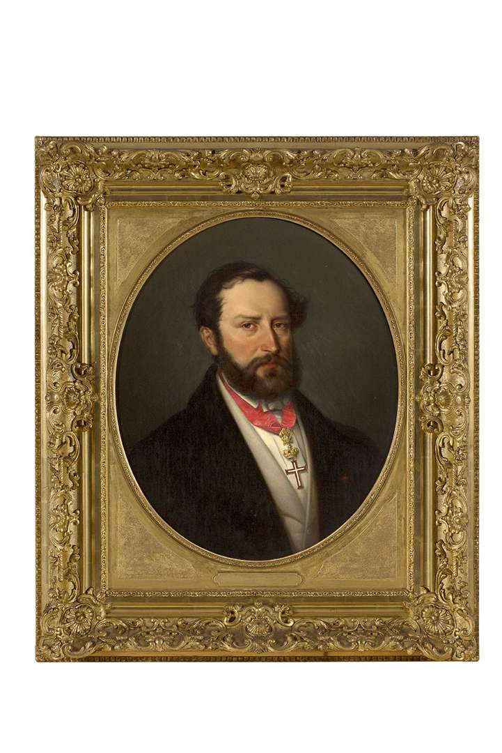 Portrait of a Man in a Black Frock Coat Wearing a Decoration with a Cross of the Vatican OrderOil on canvas (oval view)~