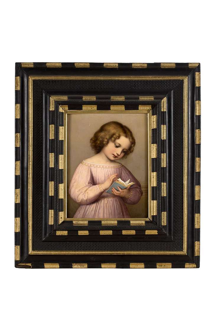 Portrait of a Little Girl in a Pink Dress ReadingOil on panel~