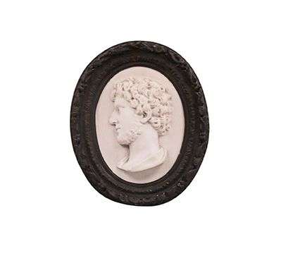 Portrait à l'effigie d'un homme de profil d'après l'antique en marbre reconstitué dans un encadrement en bois noirci.