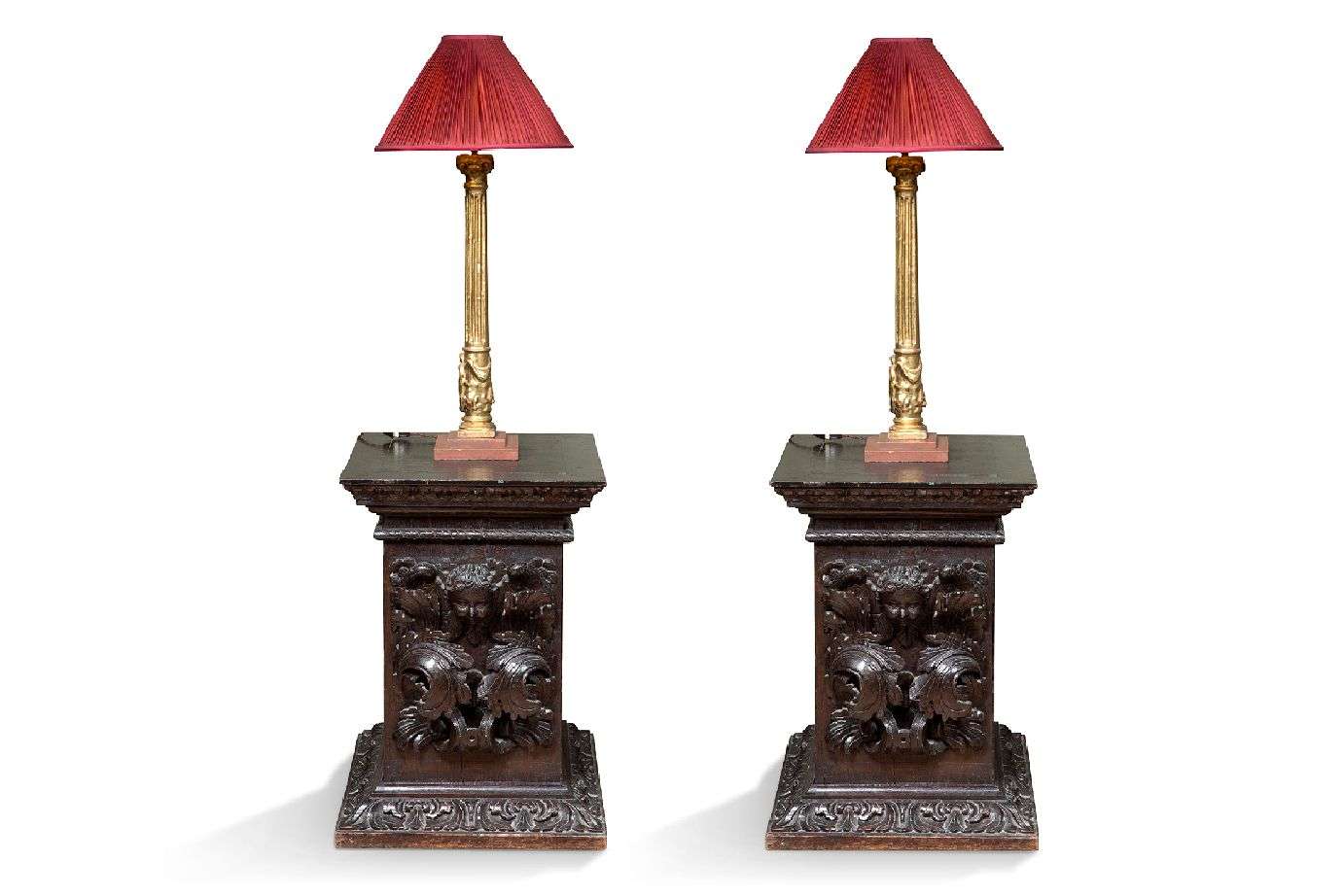 PAIRE DE LAMPES COLONNES dorées