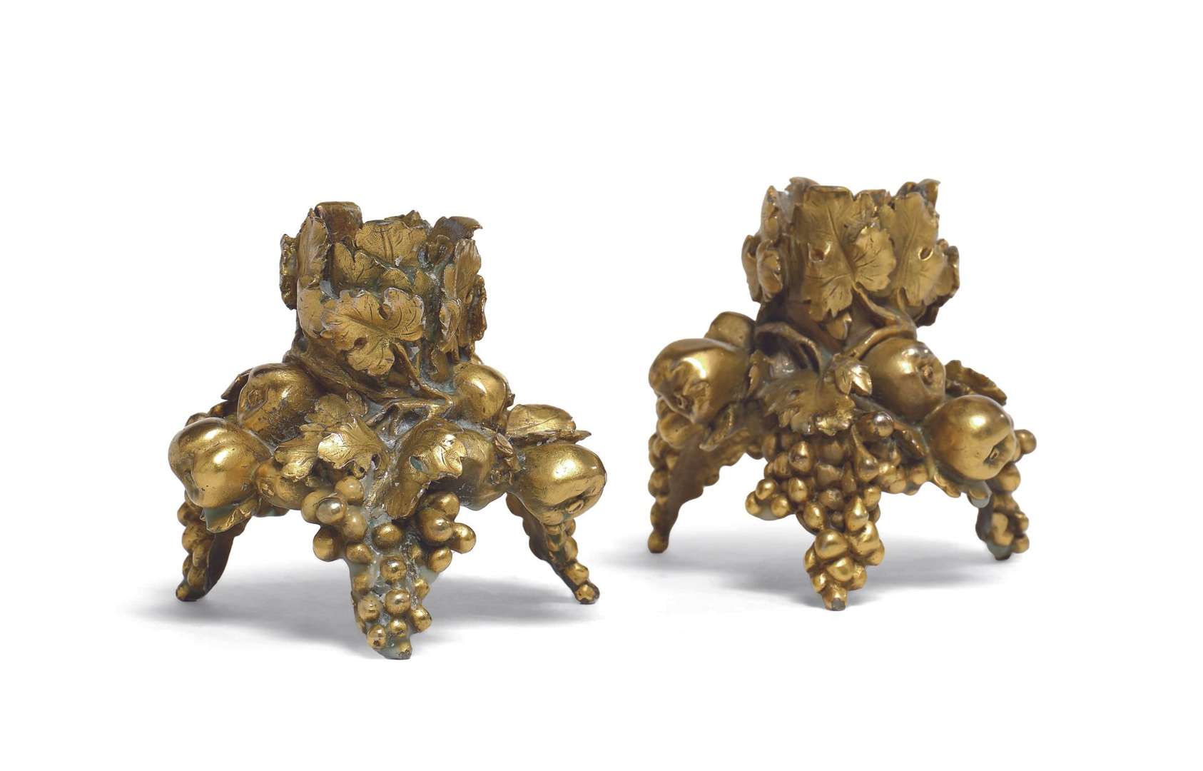 PAIRE DE PETITS BOUGEOIRS en bronze doré à décor de fruits