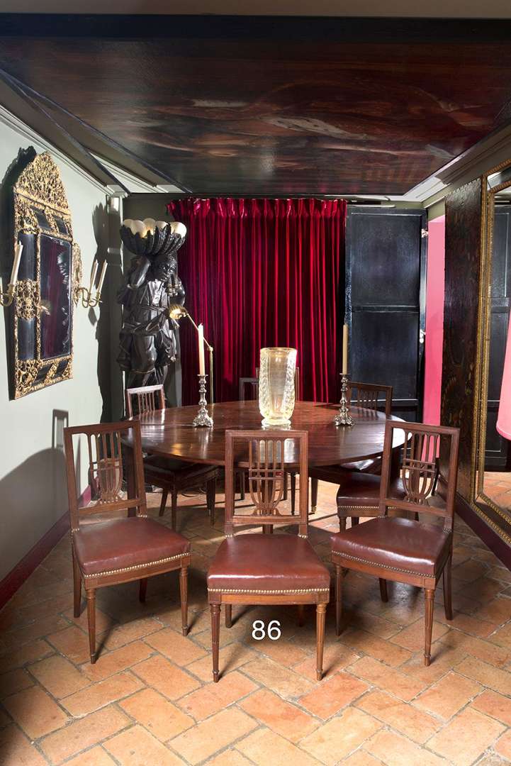 Les dossiers ajourés d'une lyre stylisée. Reposent sur deux pieds antérieurs fuselés et rudentés et deux pieds postérieurs sabres.
