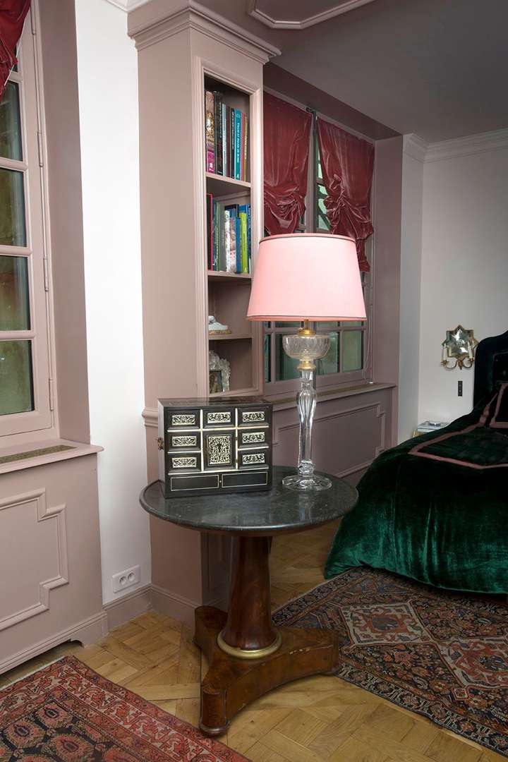 Piètement en colonne reposant sur une base tripode. Bague de laiton. Dessus de marbre noir à boudin.