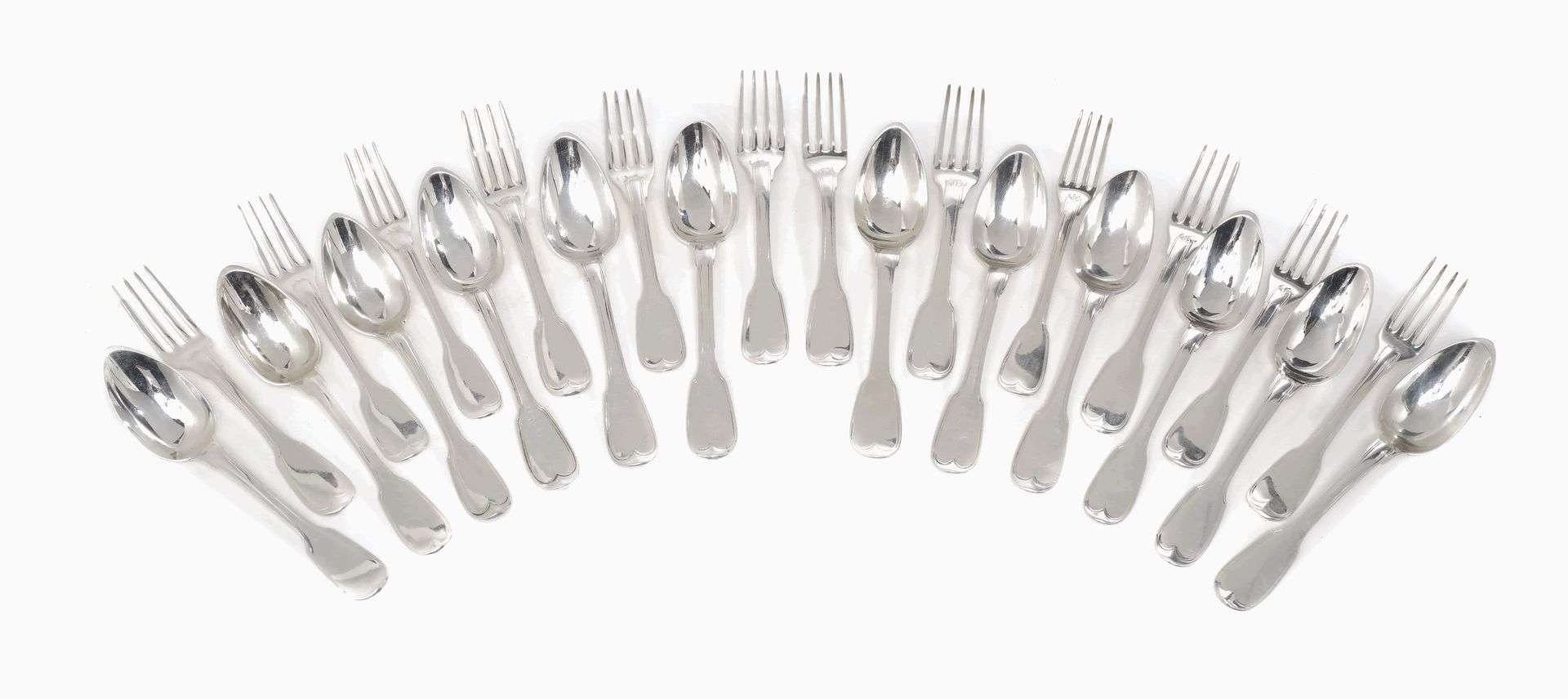 Douzes couverts en argent (fourchettes et cuillères) à modèle filet